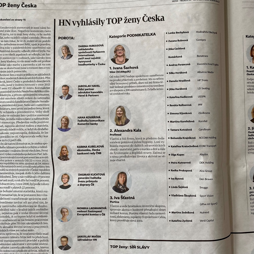 Čtenáři Hospodářských novin ocenili přínos Alexandry Kaly