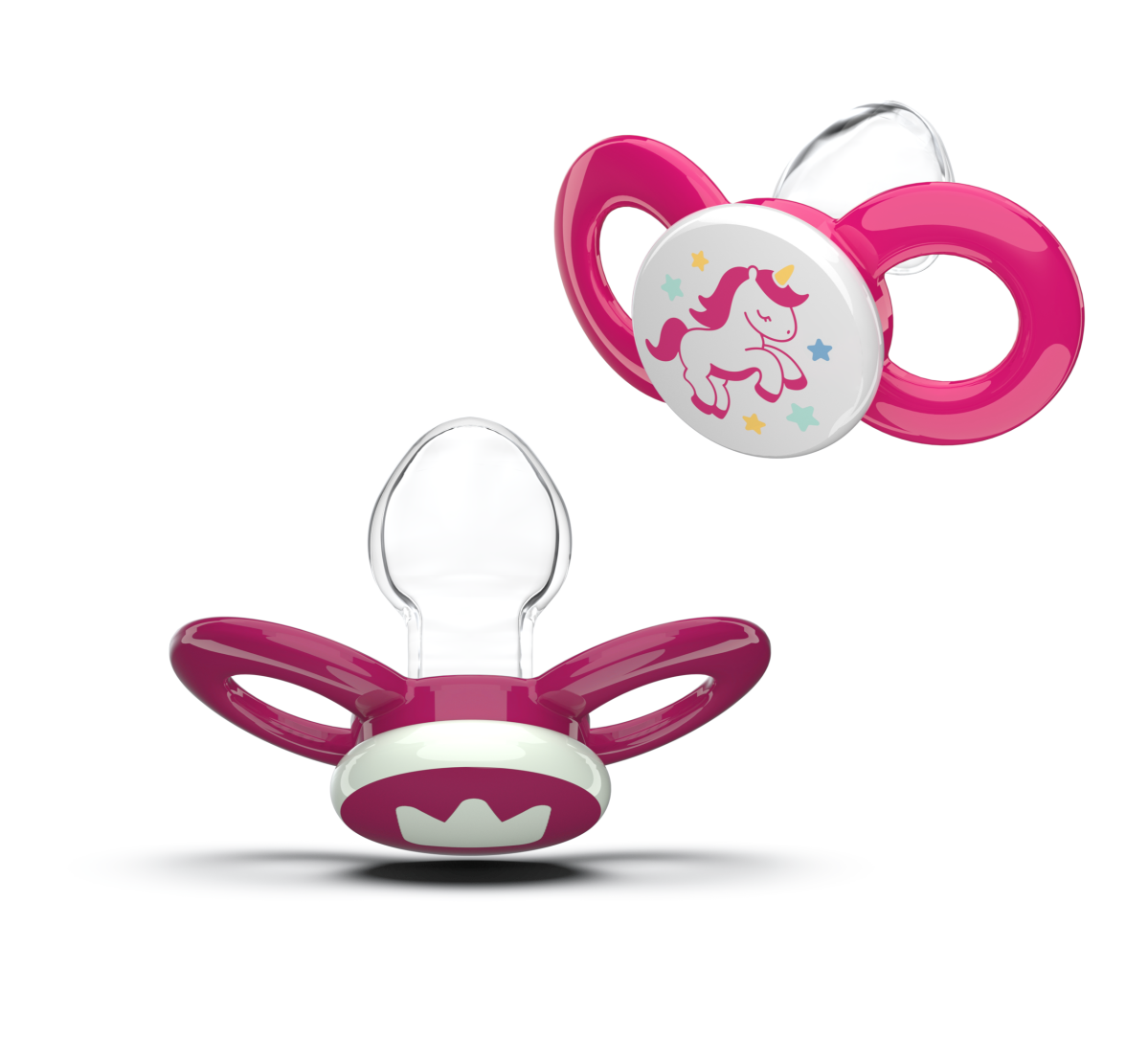 Ortodontický dudlík Dentistar je vhodný pro děti od 14 měsíců věku, tedy zhruba od prořezání první stoličky. Balení obsahuje 2 ks (denní a noční, který ve tmě svítí) a sterilizační box.Dudlíky Dentistar díky svému tvaru snižují riziko vzniku zubních anomálií až o 93 % a zajišťují přirozený vývoj patra, zubů a dásní, což potvrzuje studie z roku 2012, kterou po dobu 27 měsíců realizovala Univerzita Witten/Herdecke.