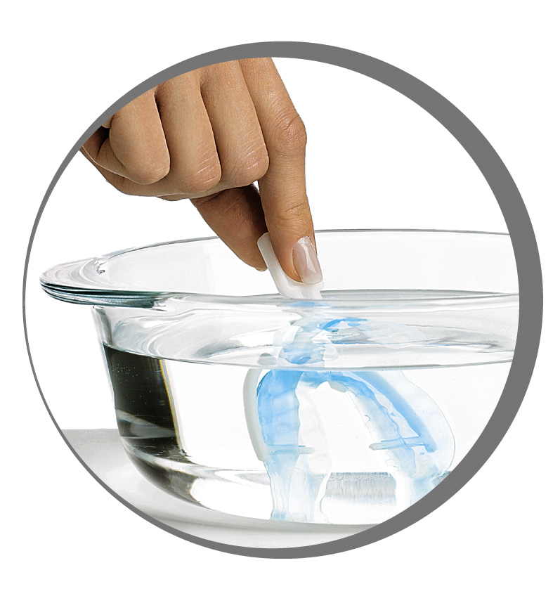 Nasazuje se na noc na horní oblouk zubů, aby izolovala kousací plošky horních a dolních zubů od vzájemného kontaktu. Tloušťka materiálu zároveň snižuje sílu tlaku při zatínání zubů a žvýkací svaly tak mohou lépe relaxovat.