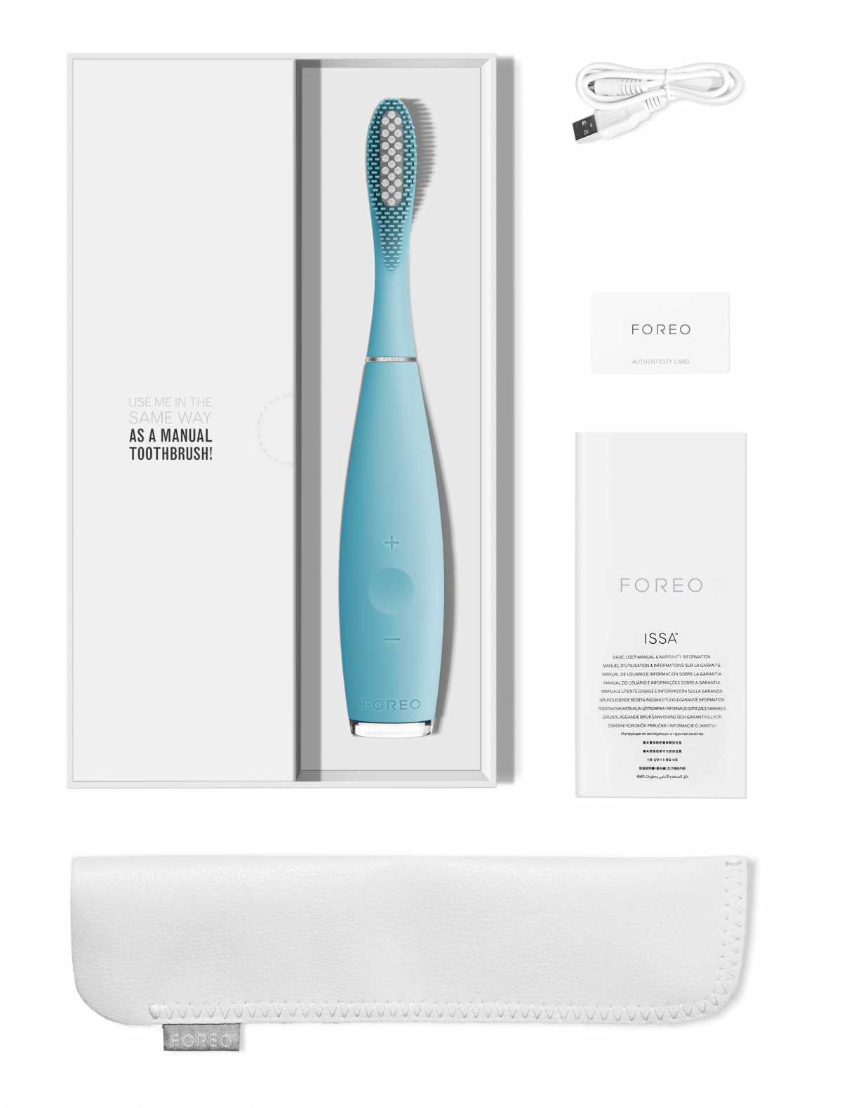Kartáček na zuby Issa™ Hybrid vytváří až 11 000 kmitů vysoké intenzity za minutu. Účinně a šetrně čistí zuby a dásně. Je vyrobený z rychleschnoucího, neporézního a hladkého silikonu, a proto v porovnání s běžným nylonovým kartáčekem výrazně lépe odolává bakteriím.