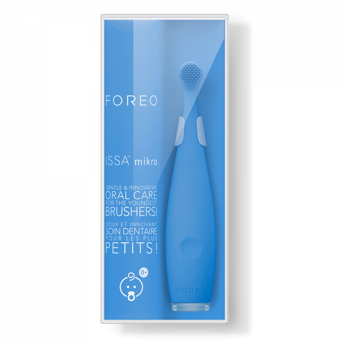 ISSA™ mikro využívá technologii sonického kmitu pro jemnou masáž, která vede k pevnějším a zdravějším dásním a zároveň dásně zklidňuje při prořezávání prvních zoubků, zmírňuje bolest a podráždění. Extrémně jemný silikon brání poškození citlivé tkáně dásní a zubní skloviny. Kartáček nabízí 2 režimy pro různé potřeby péče o chrup – čisticí režim pro jemné čištění a masážní režim pro zklidnění dásní.