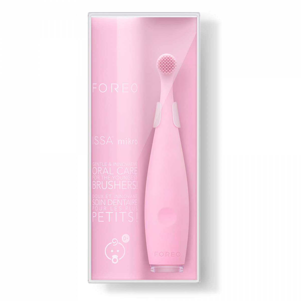 Barevné provedení "Pearl Pink". Základní péče o chrup pro nejmenší ve věku 0 až 4 roky (do 5. narozenin). Hlavici kartáčku není třeba nikdy měnit (ani to nelze). Kompletní popis