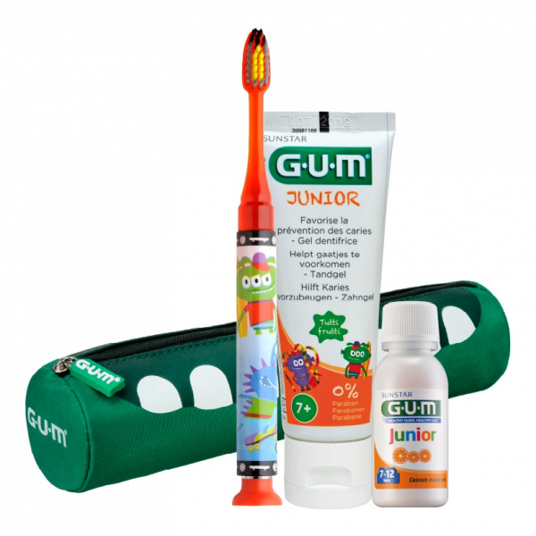 GUM JUNIOR sada na čištění zubů v penálu pro školáky
