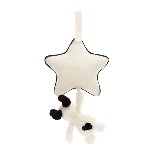 Naše nejoblíbenější černobílé štěně má nádherný krémový kožíšek vyrobený z recyklovaných vláken. Jemně zatáhněte za štěňátko a ze stylově lemované hvězdičky zazní originální ukolébavka Jellycat. Kompletní popis