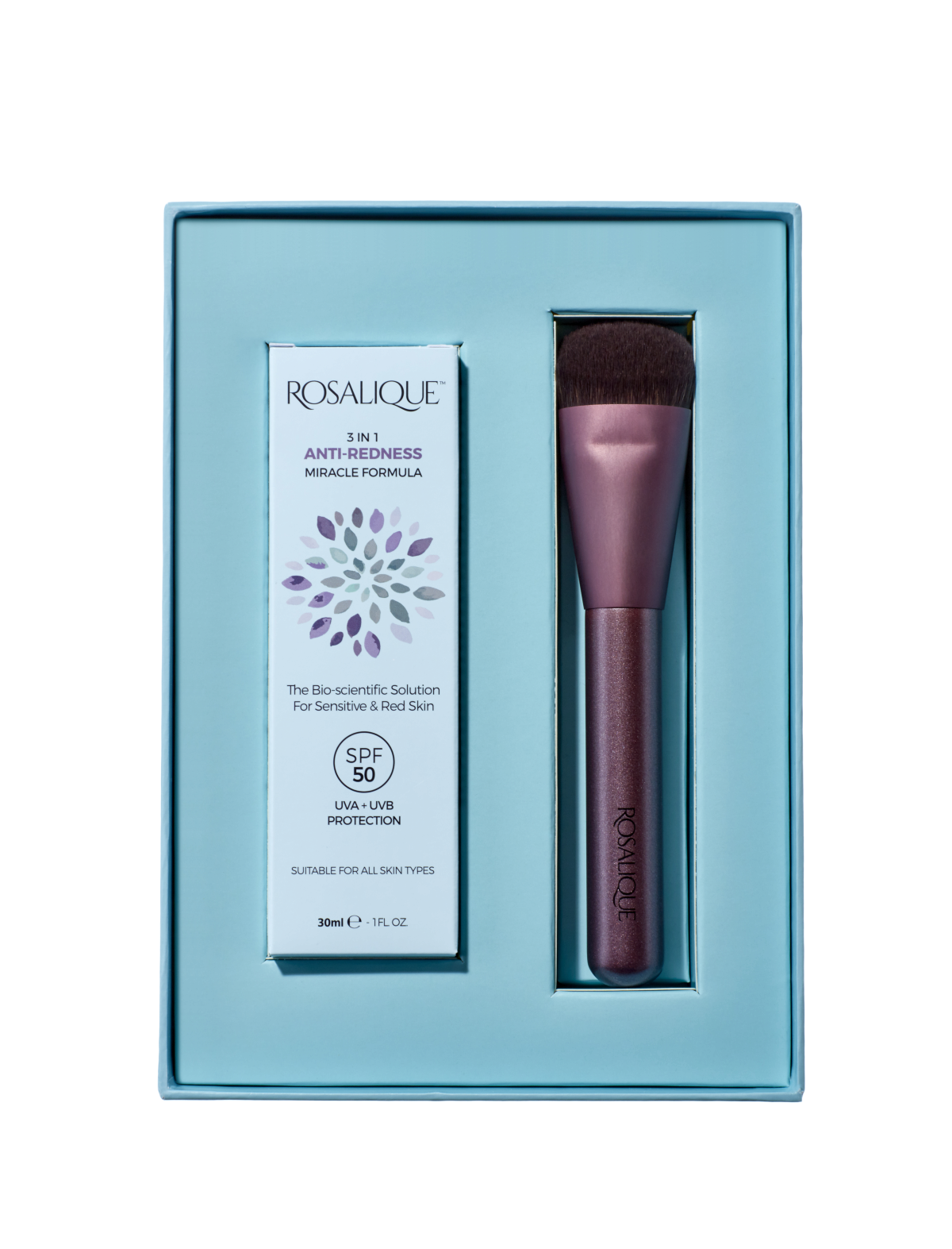 Dárkové balení se štětcem pro perfektní aplikaci krému Rosalique. Odlišné pH konečků prstů může způsobit přenos bakterií, které pokožce přitěžují. Díky použití kvalitního štětce, zajistíte citlivé pleti, kterou trápí některé se symptomů citlivé či červené kůže, aby byla vyrovnaná a ošetřená.