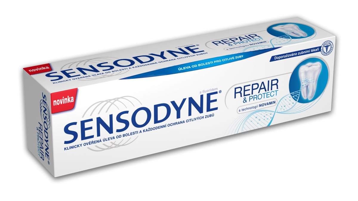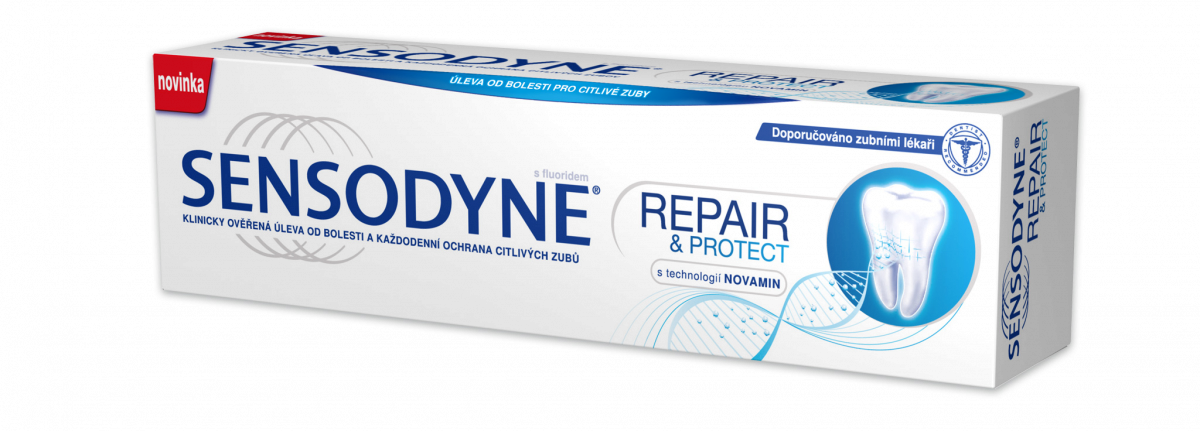 Novinka Sensodyne Repair & Protect má unikátní složení s klinicky prověřeným NovaMinem®, technologií založenou na vysokých koncentrací vápníku, která pomáhá opravit citlivá místa pomocí přirozených stavebních složek zubů. Kompletní popis