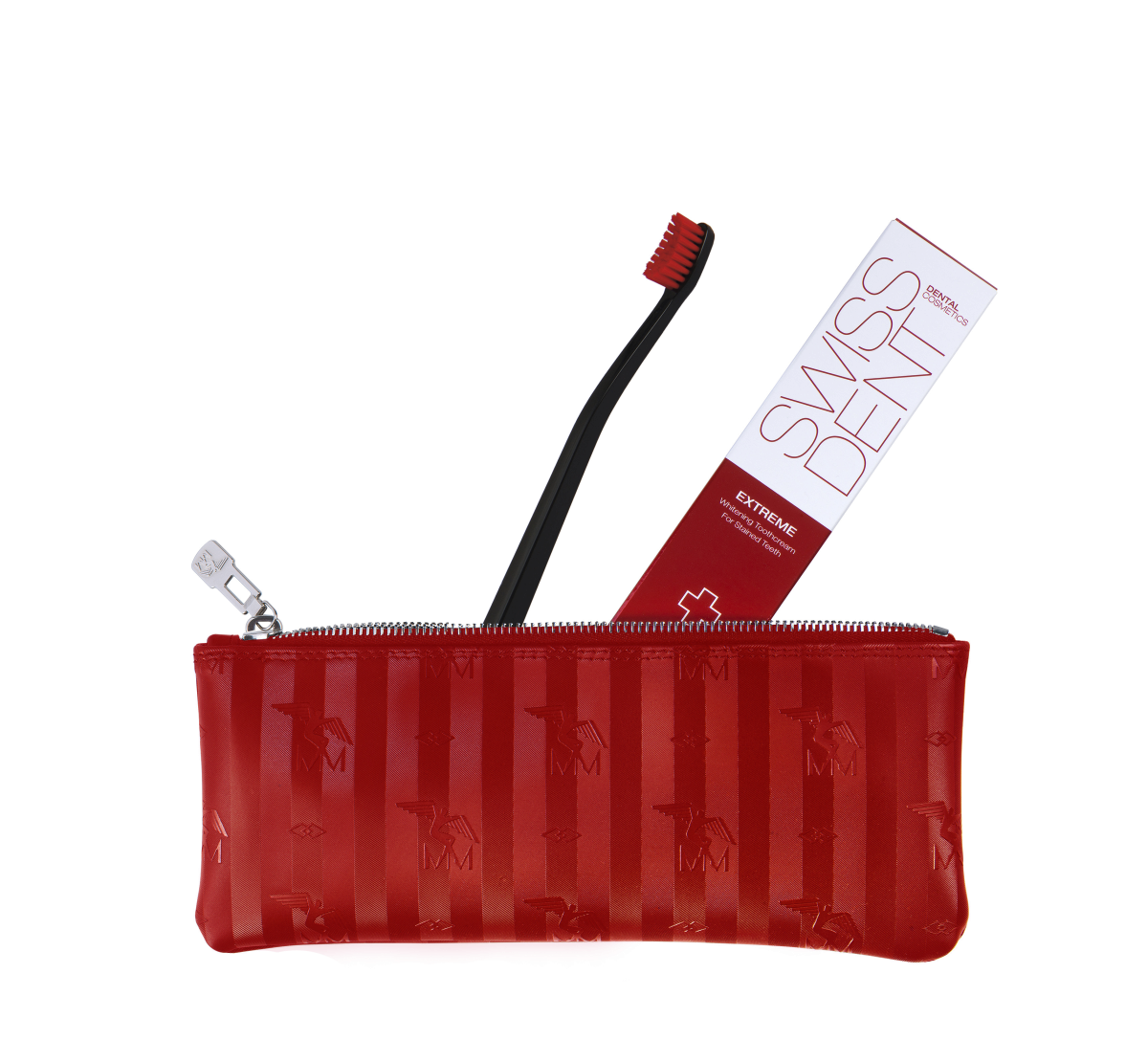 Produkty SWISSDENT jsou uloženy v luxusním pouzdru značky Maison Mollerus, švýcarského výrobce kožených kabelek, zavazadel a doplňků. Bylo vyrobeno ručně, v exkluzivní červené edici pouze pro SWISSDENT.