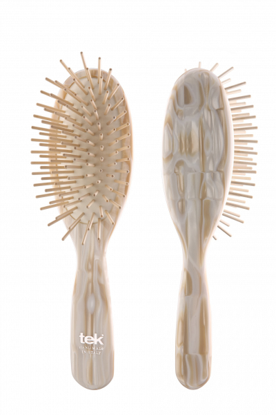 Luxusní kartáč na vlasy TEK z přírodního materiálu rhodoidu v provedení imitace bílé perleti. Kompletní popis