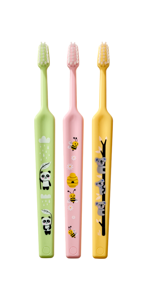 Sada nejoblíbenějších zubních kartáčků vhodných pro batolata od prvního zoubku a nejmenší děti až do 6 let věku. Malá trojúhelníková hlavice s extra měkkými vlákny s rovným zástřihem a ergonomickou plochou rukojetí pro pohodlný úchop rodičů při čištění. Veselé barevné potisky od švédské designérky Isy Form upoutají pozornost dětí. Kompletní popis