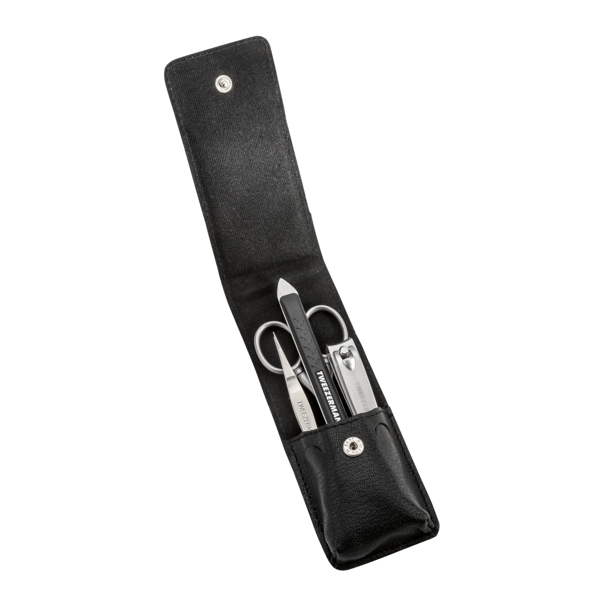 Nová kolekce Tweezerman GEAR speciálně vyvinutá pro potřeby každého muže. Sada obsahuje špičatou pinzetu Point, nůžky na zastřihávání chloupků s kulatou špičkou, štípky na nehty na rukou a multi nástroj 3 v 1. To vše je zabalené v koženém pouzdře.