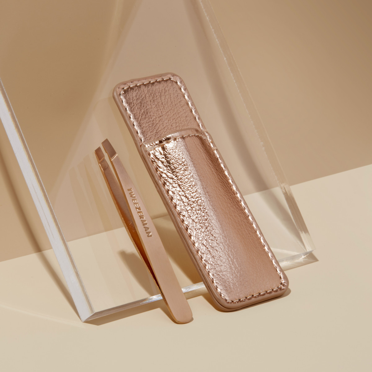Pinzeta Tweezerman Slant Rose Gold s praktickým pouzdrem do kabelky nebo na cesty
