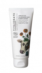 * VIVAIODAYS meruňkový olej, vyživující pleťové a tělové mléko. Ayurvedou inspirovaný koktejl s meruňkovým jádrem, sladkými mandlovými a ovesnými oleji a okurkovou vodou. Vyživující, snadno vstřebatelná, lehká, nemastná textura ideální pro každého toužící po zdravé rovnováze vlhkosti pokožky, nebo uklidňující masáži!